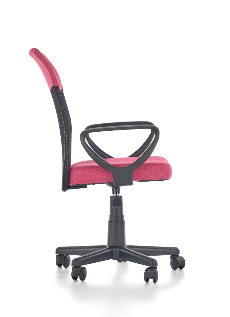 Pisarniški stol Ulric z osnovnim mehanizmom dviga, na voljo v sivi, roza in turkizni barvi. Namenjen mladim uporabnikom z mrežnim hrbtnim delom za zračnost.