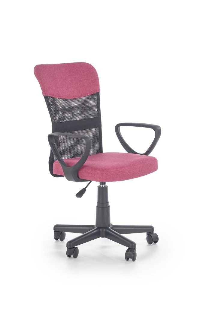 Pisarniški stol Ulric z osnovnim mehanizmom dviga, na voljo v sivi, roza in turkizni barvi. Namenjen mladim uporabnikom z mrežnim hrbtnim delom za zračnost.