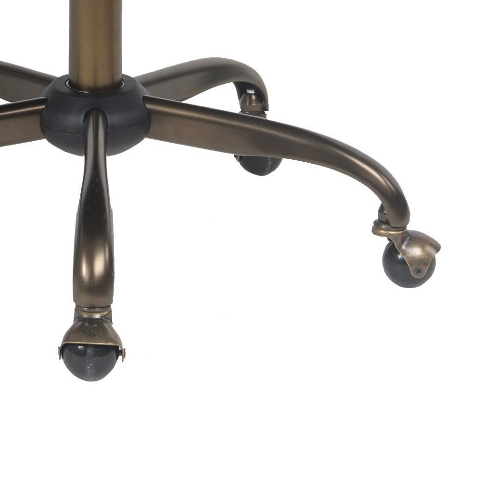 Pisarniški stol VELVET je trendovski pisarniški stol oblazinjen s sivo žametno tkanino. Je vrtljiv in nastavljiv po višini. Kovinsko podnožje in kolesca imajo izgled starinske medenine.