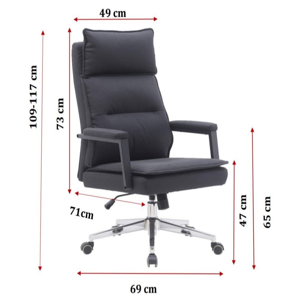 - Stol ima debelo oblazinjeno naslonjalo za hrbet, ki nudi odlično podporo zgornjemu delu telesa, zmanjšuje obremenitev in povečuje udobje med dolgim delovnim časom