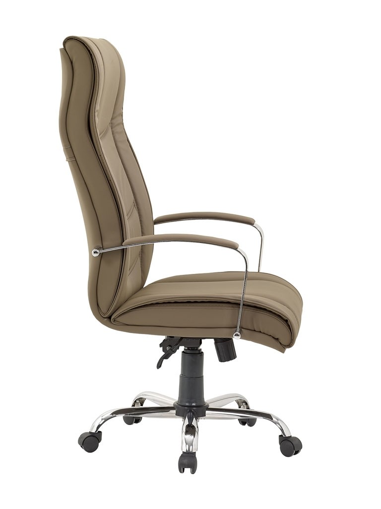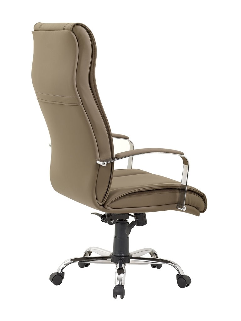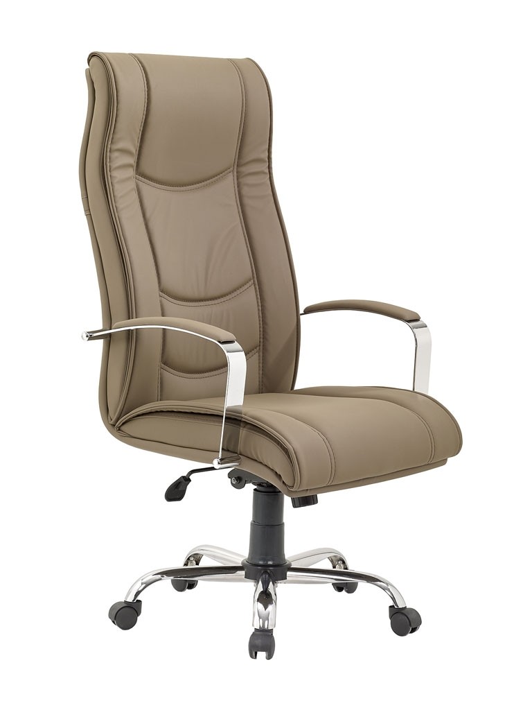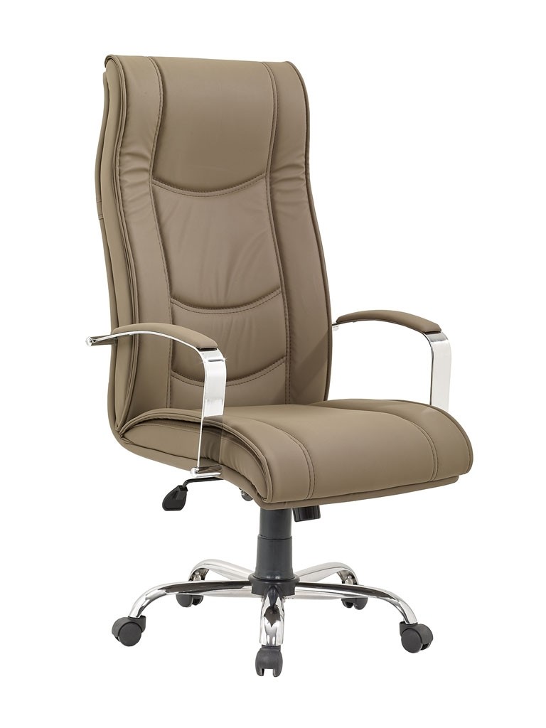 Direktorski pisarniški stol ZVEZDA bo popestril vsako pisarno s svojim elegantnim in sodobnim dizajnom. Ta predvsem udoben stol je oblazinjen v rjavo umetno usnje, v sediščih pa ima kakovostno peno visoke gostote, ki bo dolgo časa ohranila svojo obliko in vam nudila udobje med sedenjem. Poleg vrtljivosti in nastavljivosti po višini, ima stol tudi fiksne kovinske rokonaslone, ki so oblazinjeni za večje udobje.