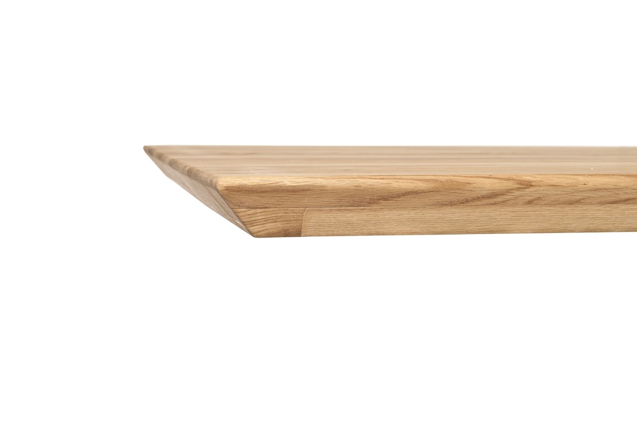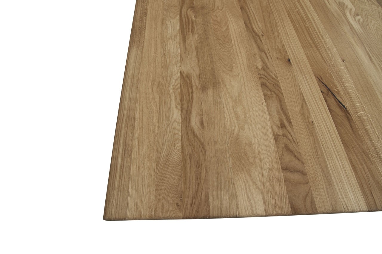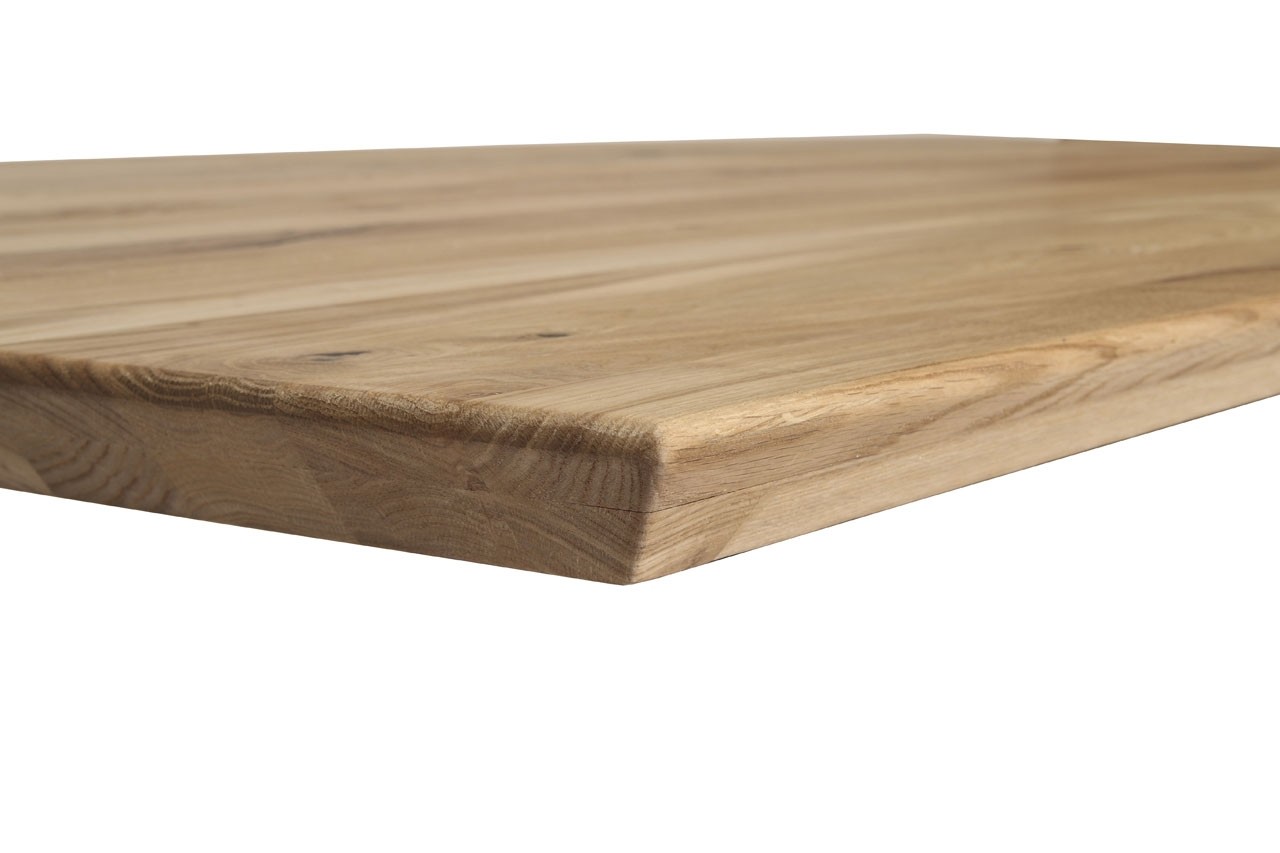 Plošča za mizo CONNECT s švicarskim robom je narejena iz masivnega oljenega hrastovega lesa in je rustikalnega videza. Plošča debeline 2+2 mm je na voljo v petih različnih dimenzijah.