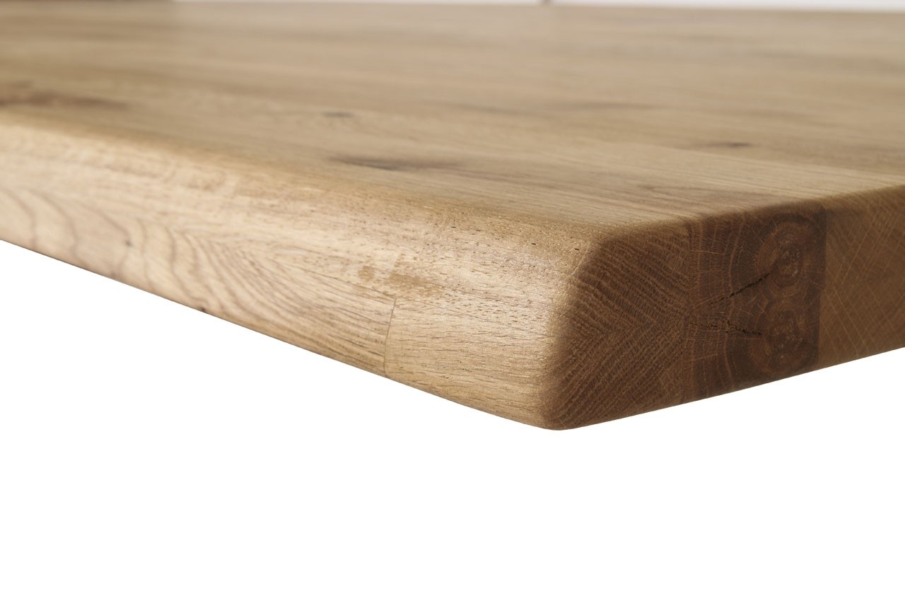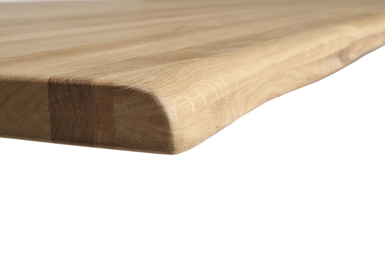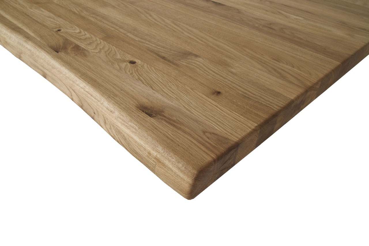 Plošča za mizo CONNECT z naravnim robom je narejena iz masivnega oljenega hrastovega lesa in je rustikalnega videza. Plošča debeline 2+2 cm je na voljo v 5ih različnih dimenzijah, tako da boste zagotovo našli vsaj eno, ki bo primerna za vašo jedilnico ali kuhinjo.