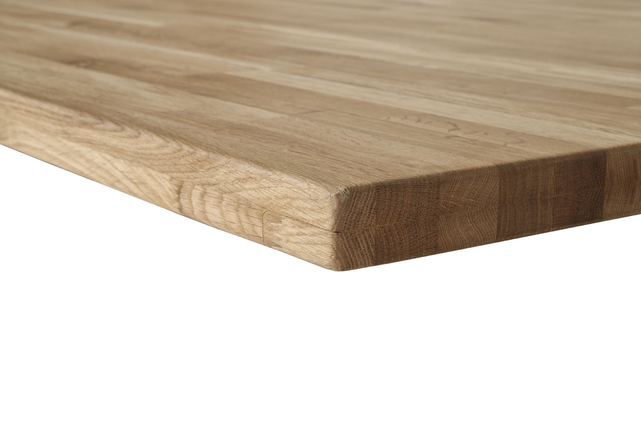Plošča za mizo CONNECT z ravnim robom je narejena iz masivnega oljenega hrastovega lesa in je rustikalnega videza. Plošča debeline 2+2 mm je na voljo v štirih različnih dimenzijah, tako da lahko po želji izberete tisto, ki se bo najbolje podala v vaš prostor..