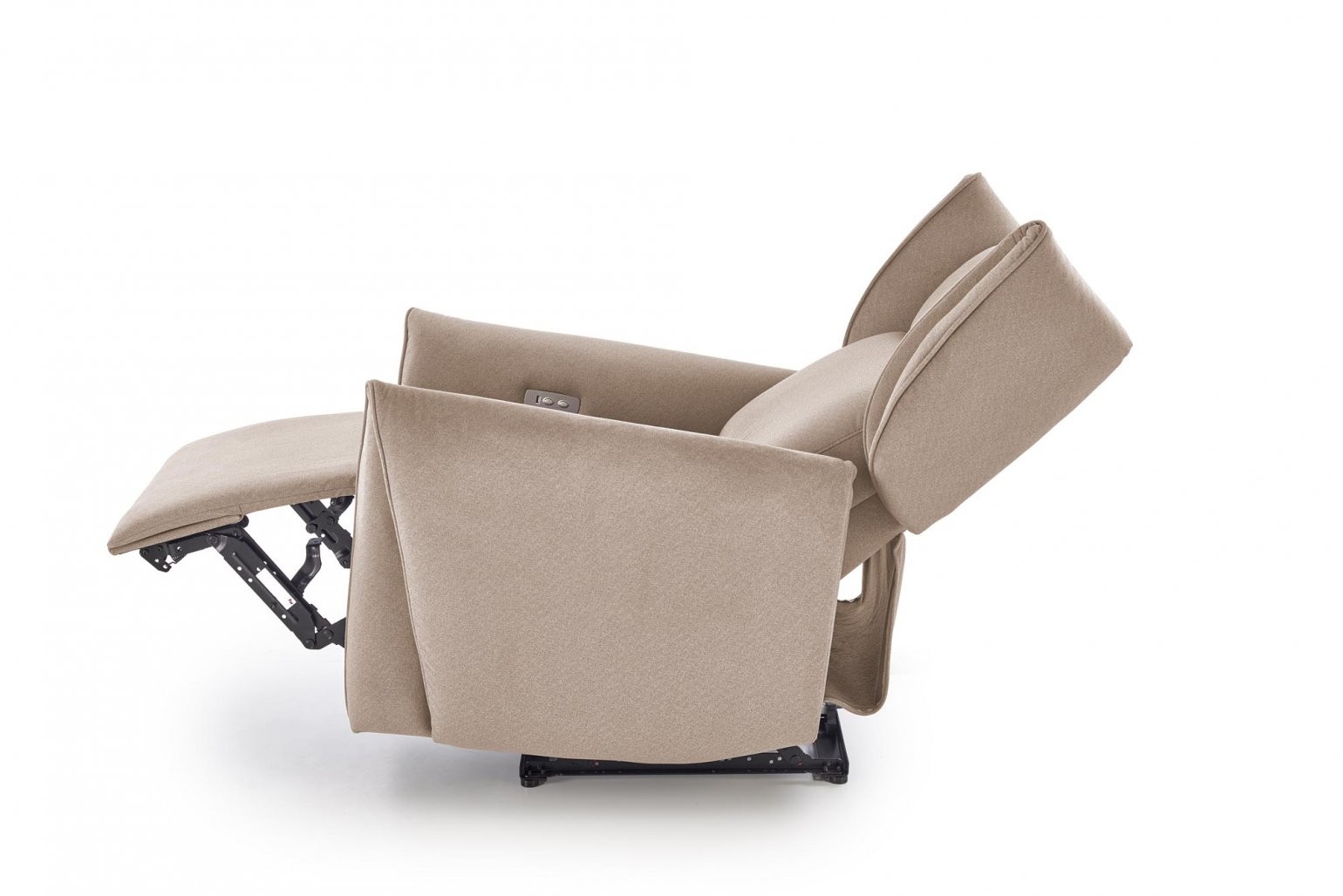 Počivalnik je opremljen z električnim mehanizmom za počivanje in omogoča enostavno prilagajanje položaja za optimalno sprostitev. Z mehanizmom za dviganje nog si lahko po dolgem dnevu privoščite trenutek počitka in popolnoma sprostite telo. Izdelan je iz kakovostne tkanine, ki zagotavlja dolgotrajno udobje in vzdržljivost. Njegova minimalistična in brezčasna oblika pooseblja stil, ki se osredotoča na uporabnost, hkrati pa prostoru doda pridih elegance.