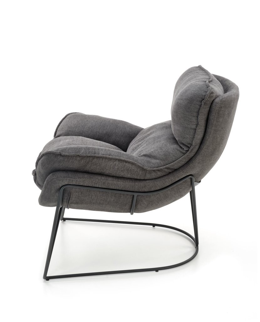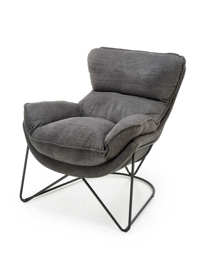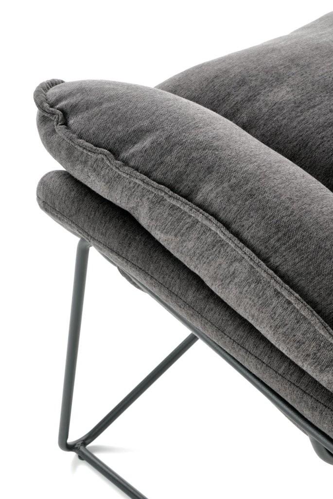 Počivalnik Alver, v temno sivi barvi, izdelan iz tkanine in kovinskih nog. Elegantna in moderna zasnova za udobno sedenje, s trpežno strukturo in višino sedišča 52 cm.