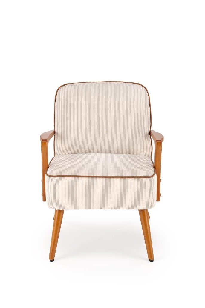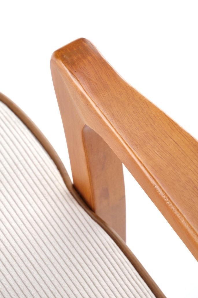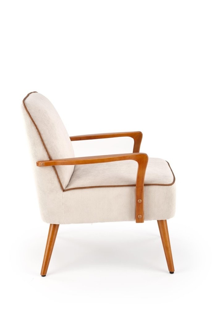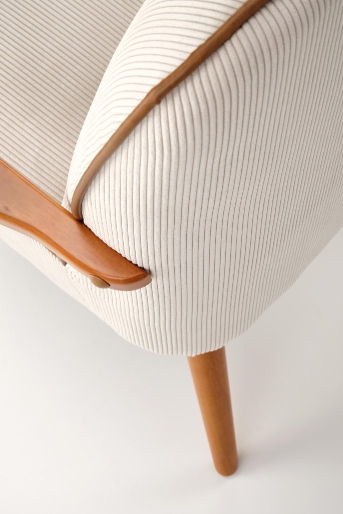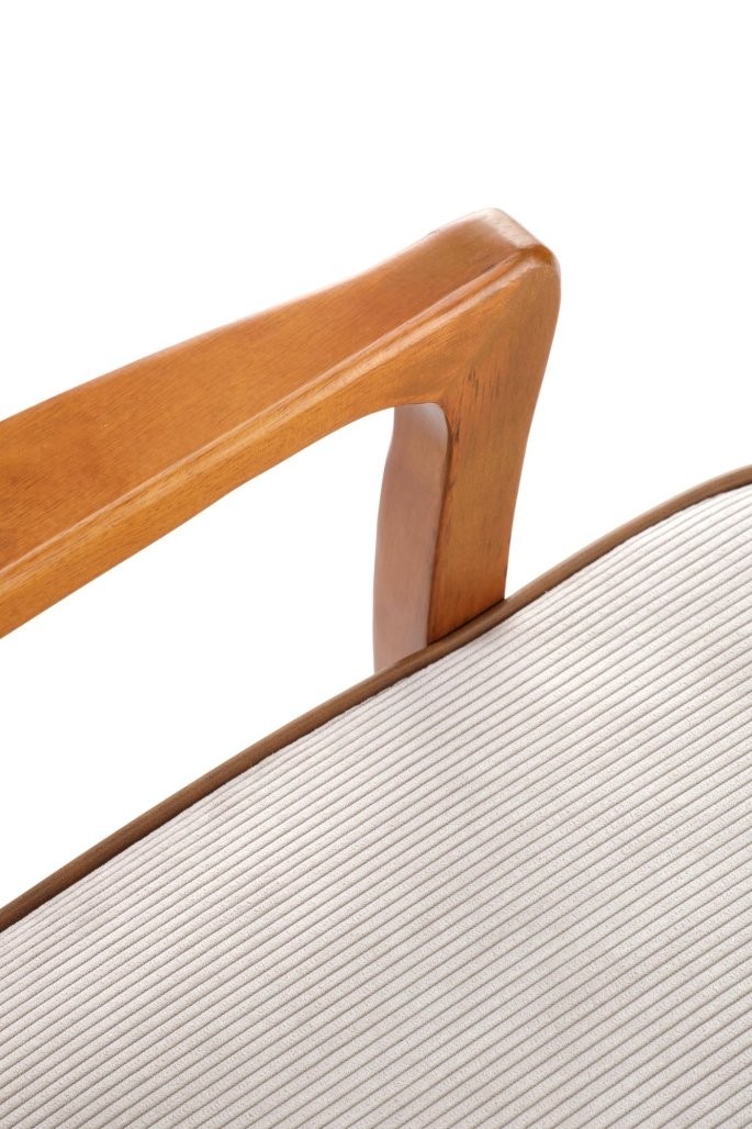 Počivalnik Arel v tradicionalnem, skandinavskem in retro slogu z oblazinjenjem iz bež tkanine in okvirjem iz svetlega oreha. Udoben in estetsko privlačen dodatek za vsak prostor.