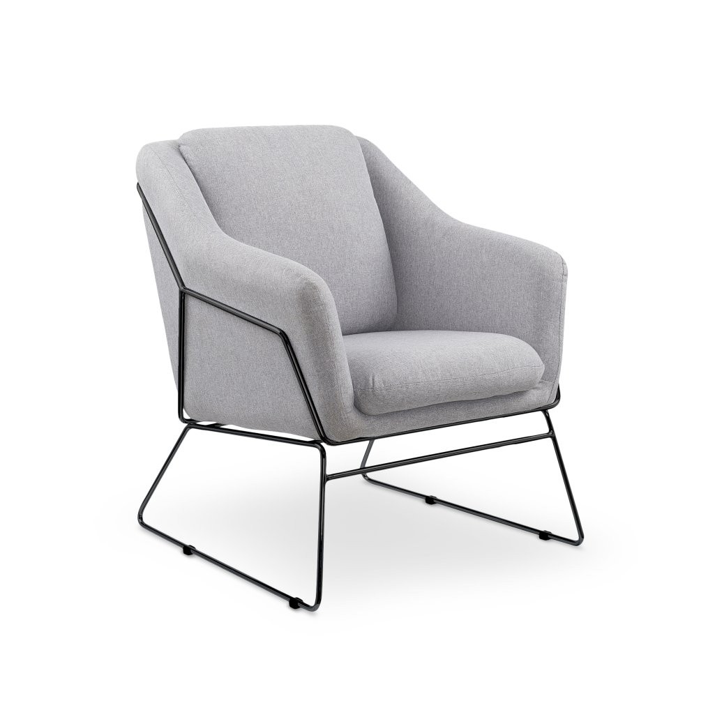 Počivalnik Foran v svetlo sivi tkanini s črnimi kovinskimi nogami združuje udobje in skandinavski dizajn, ki se lepo poda v vsak sodoben prostor.