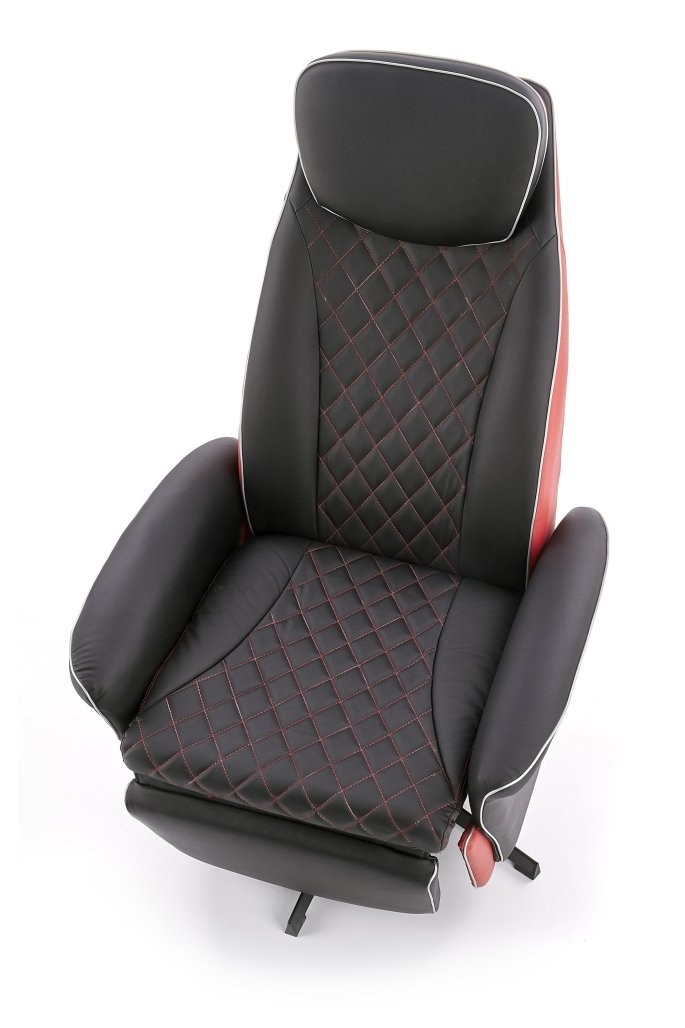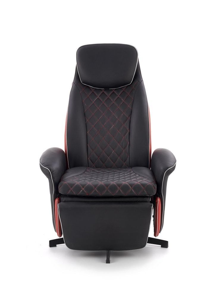 Počivalnik Gelor nudi udobje in sprostitev s funkcijo nagiba. Oblazinjen z eko usnjem v črni in rdeči barvi ter kovinskim okvirjem prinaša moderen slog v vaš dom.