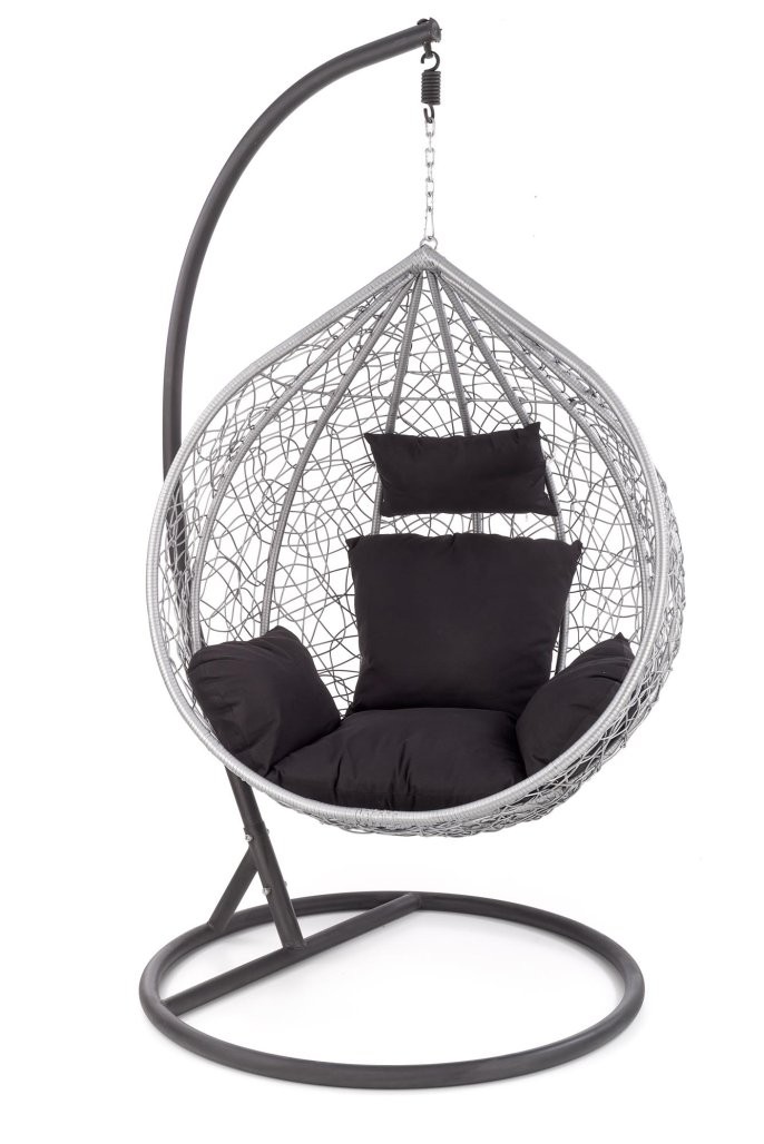 Počivalnik Jaran v boho modernem slogu, izdelan iz sintetičnega ratana, tkanine in jekla s prašnim premazom. Barva: črna in siva, primeren za udobno sprostitev z višino sedala 58 cm.