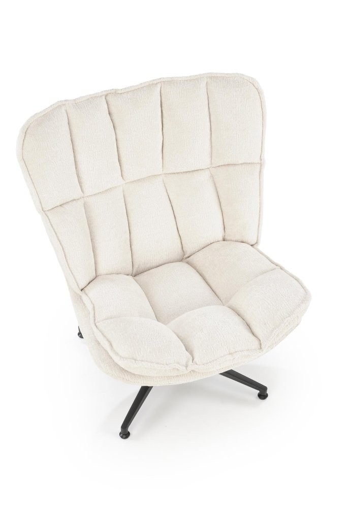 Počivalnik Jero z vrtljivim sedežem in krem tkanino, ki omogoča udobje in funkcionalnost v sodobnih bivalnih prostorih. Primeren za različne prostore.