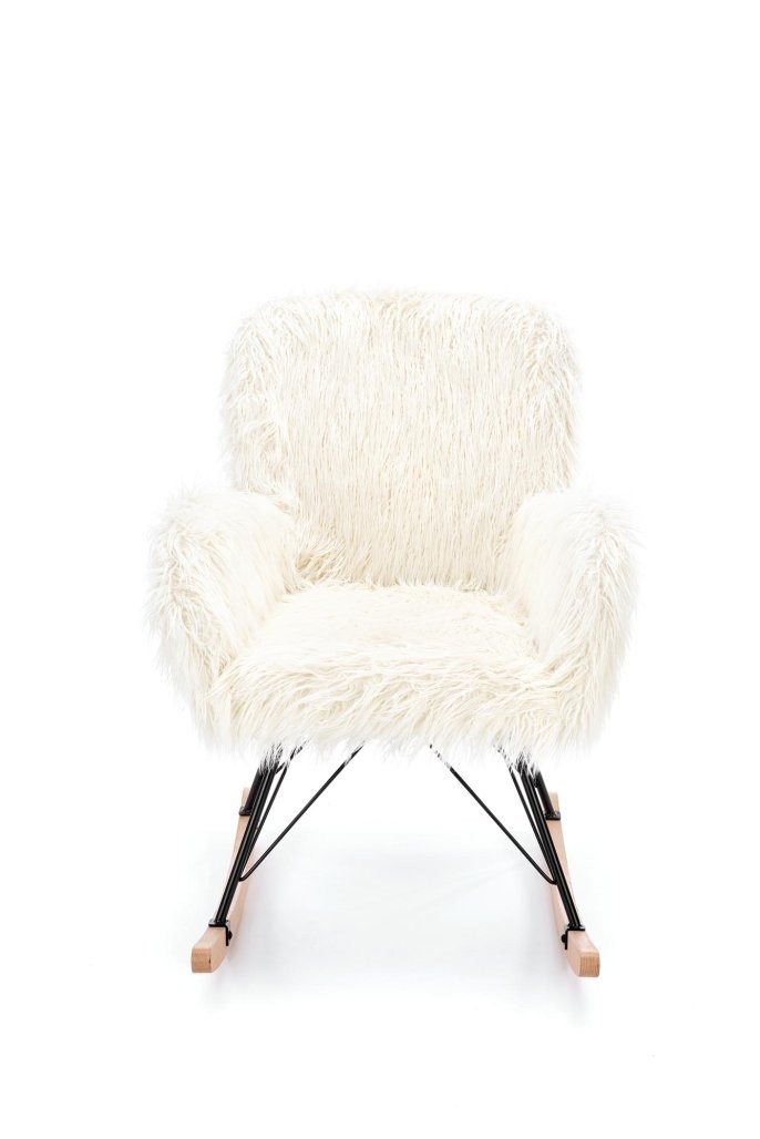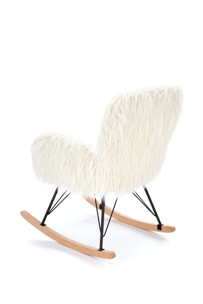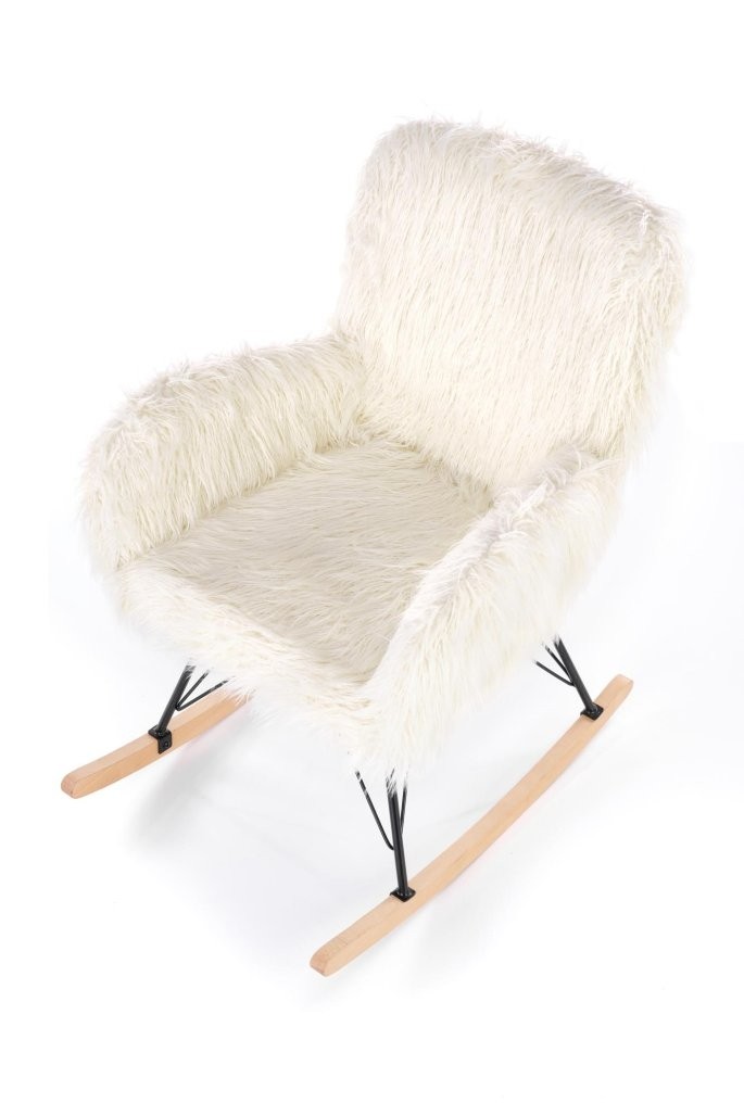 Počivalnik Mera s krem tkanino in kovinskim okvirjem ponuja funkcijo zibanja za dodatno udobje. Skandinavski slog prinaša svežino in toplino v vsak prostor.