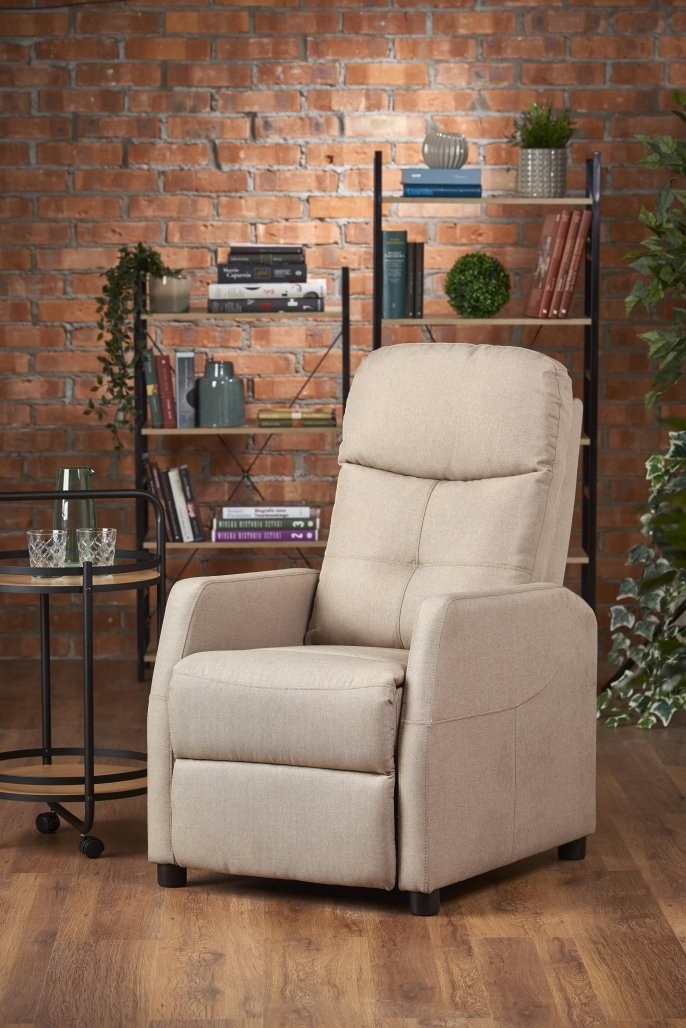 Počivalnik Neran s tapeciranjem v bež barvi in funkcijo nagibanja združuje tradicionalen stil z udobjem. Ta fotelj omogoča višino sedala 48 cm za maksimalno sprostitev.