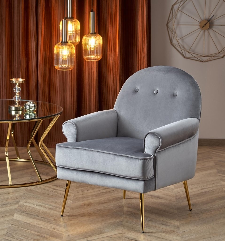 Počivalnik Reron prinaša eleganco z žametnim oblazinjenjem in zlatimi kovinskimi nogami. Na voljo v različnih barvah, združuje udobje in stil za vsak sodoben dom.