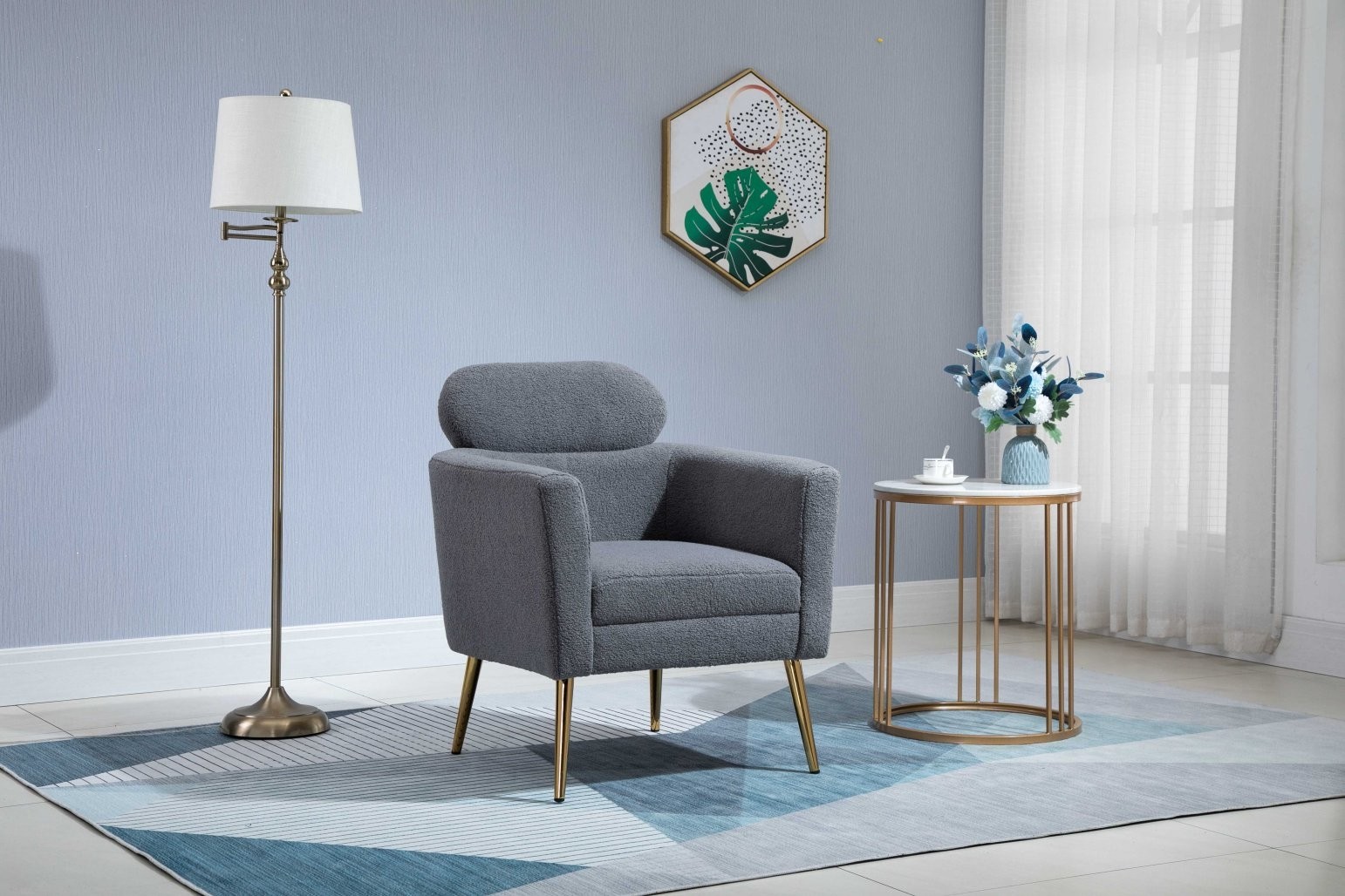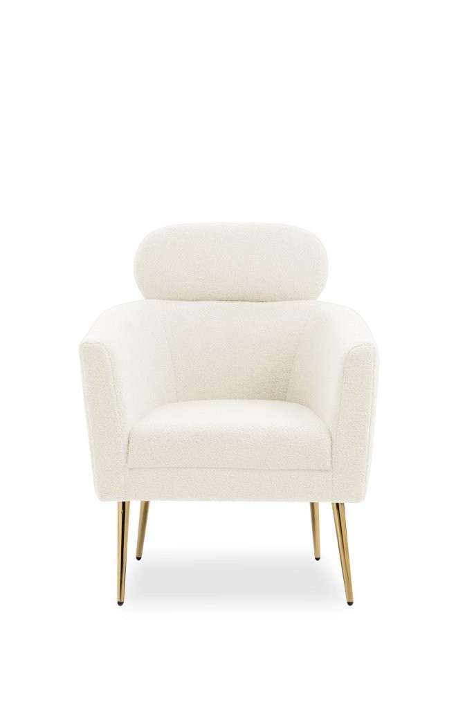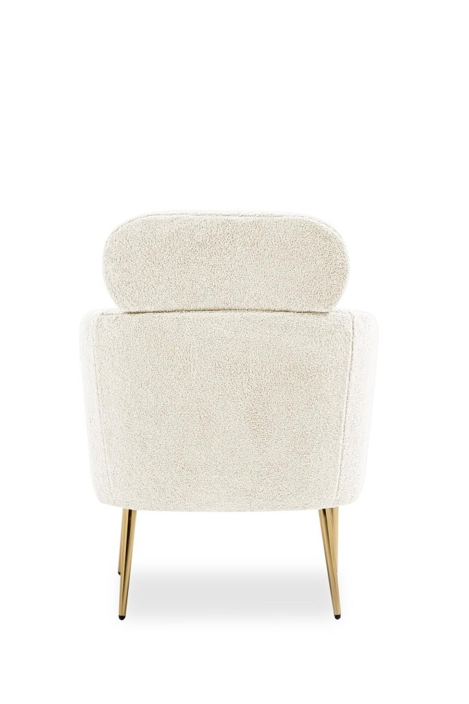 Počivalnik Sala z bouclé tkanino v kremni barvi in zlatimi nogami iz kromiranega jekla. Eleganten dodatek, ki prinaša udobje in stil.
