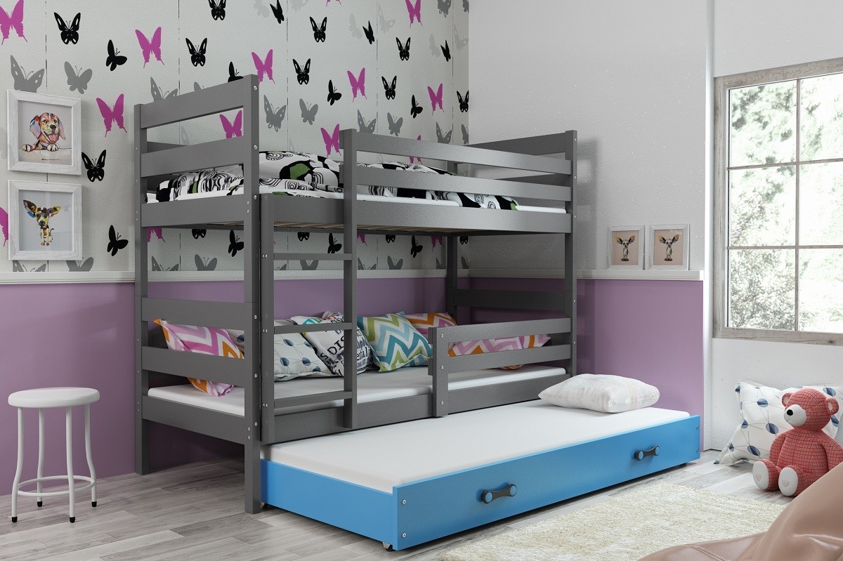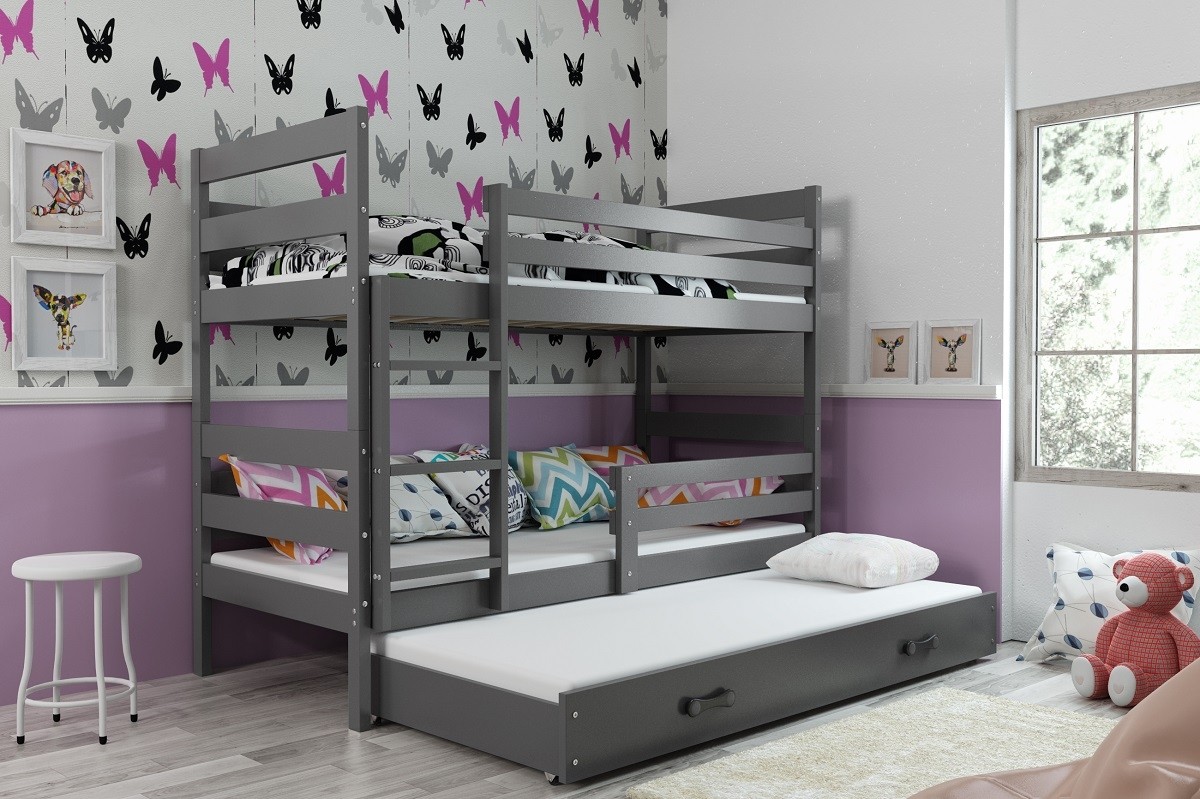 Moderen pograd ERYK nudi udobno spanje in dodatno ležišče, ki omogoča, da v sobi udobno prespi še ena oseba. Njen čudovit dizajn postelje oživi celotno otroško sobico, kjer bo vaš otrok z veseljem prebival v času igre ali učenja. V ceno so všteti trije posteljni podi in tri ležišča.