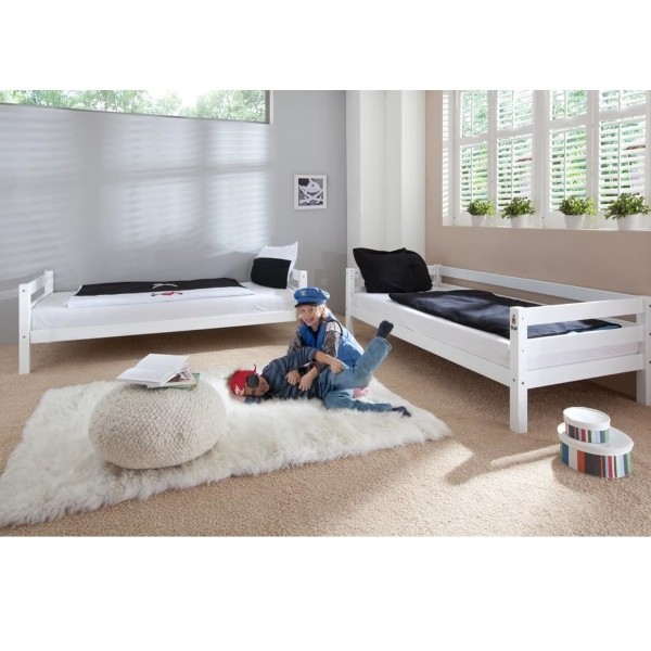 Pograd EVEN je narejen iz masivnega bukovega lesa. Na voljo v natur ali beli barvi. Sestavljen je iz dveh postelj, ki imata možnosti delitve, kar pomeni, da ju lahko uporabljate kot dve samostojne postelje ali kot pograd. Pograd ima letveno dno, vzmetnica ni vključena.