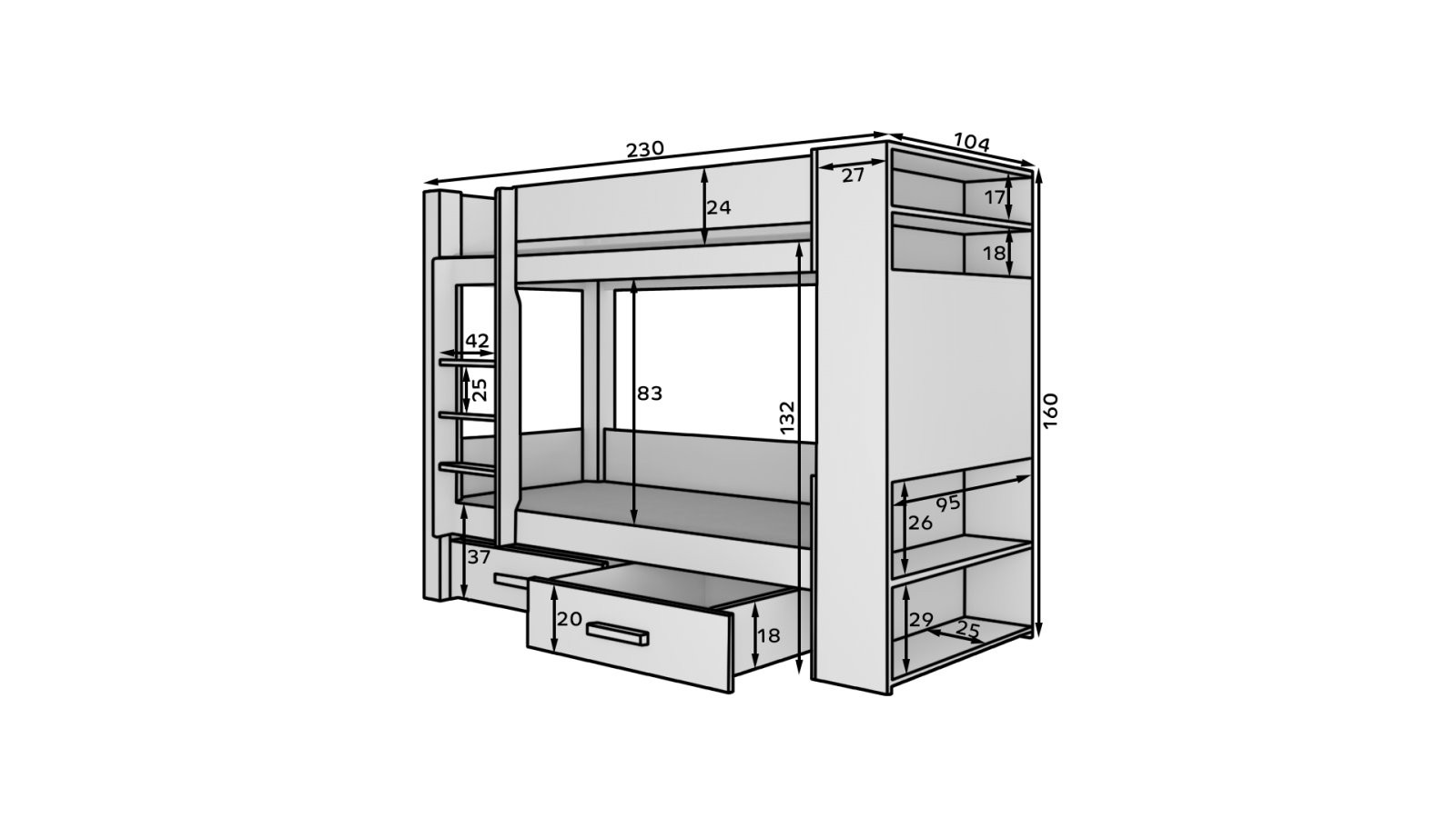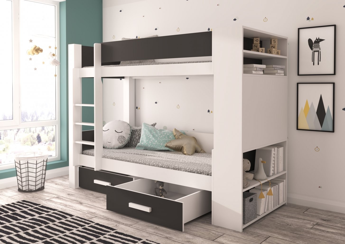 Pograd GARET za 2 osebi z vzmetnicama je popolna rešitev za prihranek prostora v otroški ali mladinski sobi. S svojo funkcionalnostjo in sodobnim dizajnom nudi udobje in varnost ter omogoča prilagoditev po vaših željah. Nosilnost je 110 kg na ležišče.