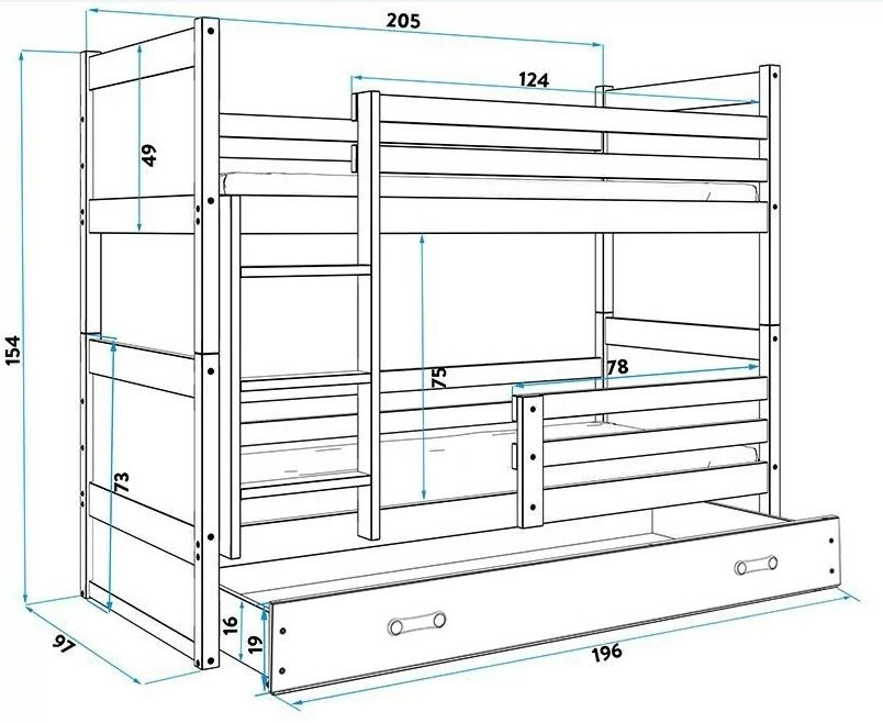 Otroški pograd RICO zgotavlja izjemno kakovost. Pograd RICO je oblikovan predvsem zato, da lahko svojim otrokom ustvarite varno in ljubko sobico, za kar vam ne bo potrebno odšteti celega bogastva. V kakovost same postelje vas bo prepričala uporaba naravnega lesa ter visoko kakovostnih plošč MDF. Konstrukcija vseh otroških postelj BMS pa je povezana z zelo močnimi in trdnimi vijaki.