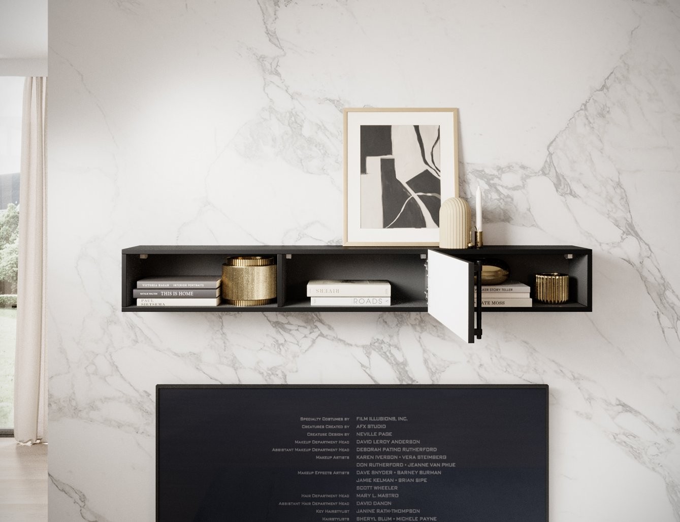 Viseča montaža omogoča, da se Polica Raftt odlično prilega v 'loft', industrijske in sodobne postavitve. Opremljena je s tečaji z mehkim zapiranjem za udobno uporabo, kar zagotavlja, da je uporaba police tiha in enostavna. Gre za kos, ki združuje stil in funkcionalnost v enem.
