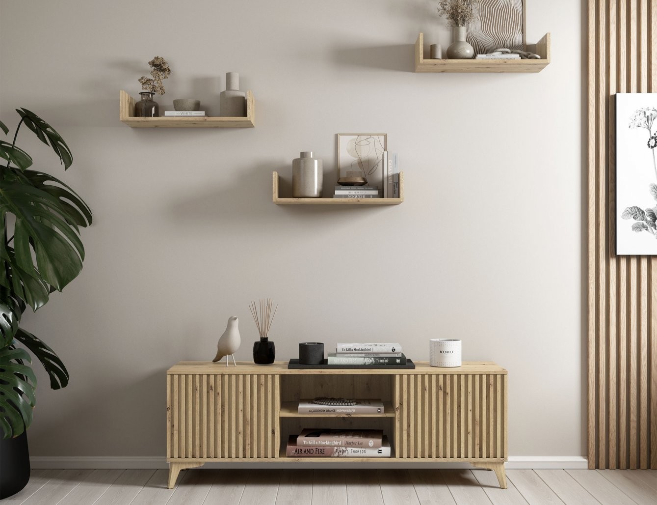 Stenska polica Vissta je idealna rešitev za vse, ki cenite sodoben, minimalističen dizajn, ki se brezhibno zlije s skandinavskimi notranjimi slogi. Polica Vissta je vsestranski dekorativni element, ki se odlično prilega v dnevno sobo, spalnico ali pisarno. Njena preprosta, a moderna oblika bo čudovito poudarila vaše najljubše dekoracije, knjige ali fotografije.