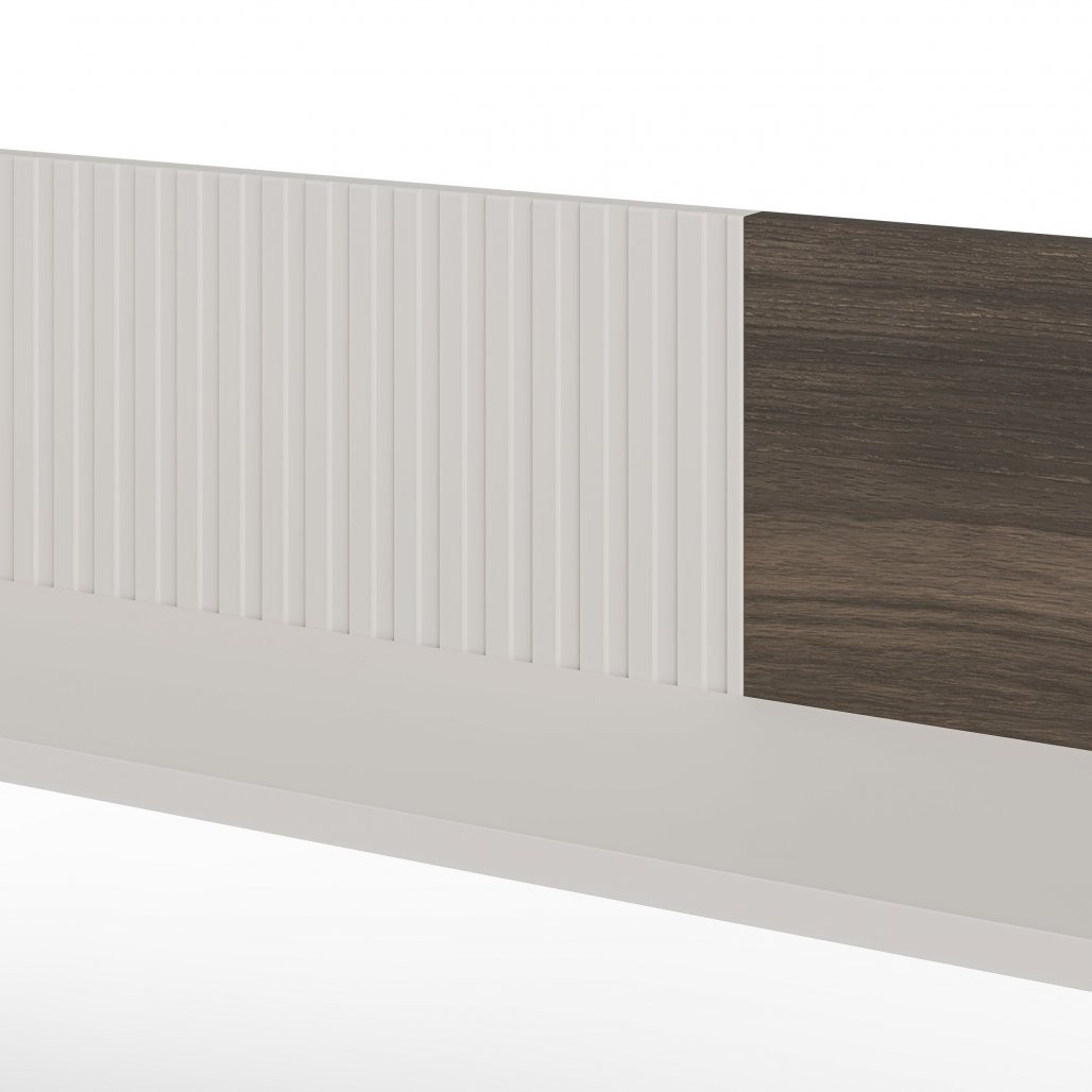 Izdelana je iz visokokakovostnih materialov, kot sta laminiran MDF in laminirana iverna plošča, ki zagotavljajo trdnost in dolgo življenjsko dobo. Dodatki iz polipropilena poskrbijo za moderno estetiko in stabilnost. Barvna kombinacija kašmir/oreh/črna prinaša toplino in prefinjenost, hkrati pa ustvarja eleganten videz, ki je prilagodljiv različnim notranjim stilom.