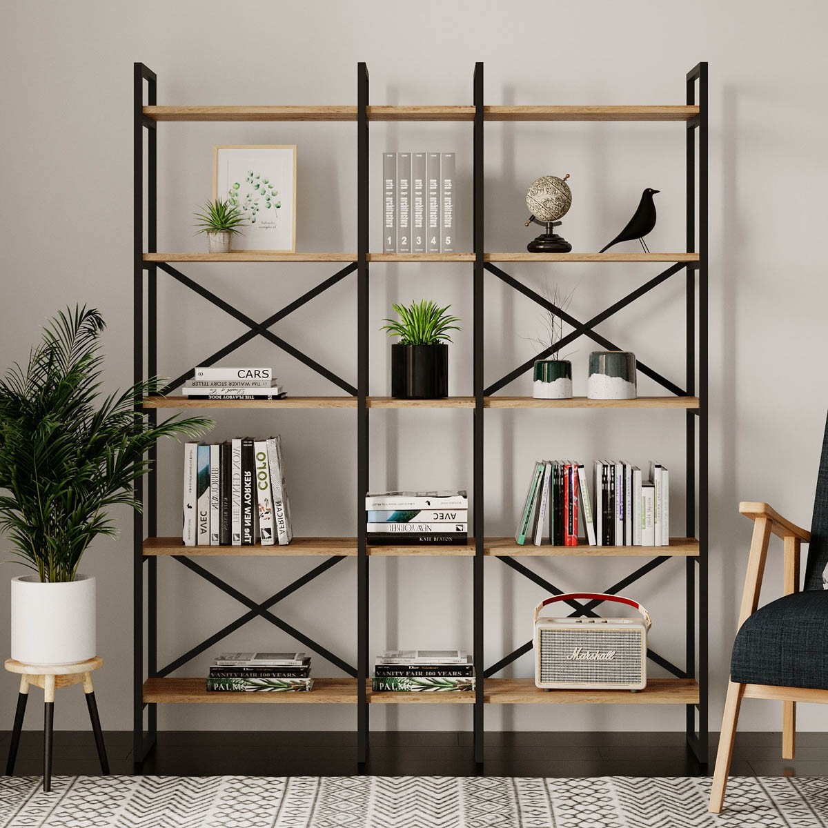 Poličnik, ki vam ga predstavljamo, je popolna rešitev za shranjevanje in organizacijo vaših stvari. Poličnik je širok in ponuja kar petnajst prostornih polic, ki vam bodo nudile dovolj prostora za shranjevanje knjig, okrasnih predmetov, rastlin in drugih stvari, ki jih želite imeti na ogled. Zahvaljujoč svoji velikosti in številu polic, vam bo ta poličnik pomagal organizirati in pospraviti vaš prostor.