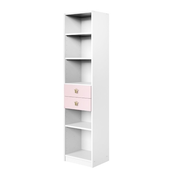 Nadgradite otroško sobo s priročnim poličnikom CARA ki je na voljo v prikupni kombinaciji bele in roza barve ter z dekorjem v obliki krone. Poličnik ima pet polic in dva predala, tako da nudi obilo prostora za odlaganje knjig, slik in raznih dekorativnih predmetov. Je del kolekcije CARA, oglejte si še ostale artikle iz te kolekcije!