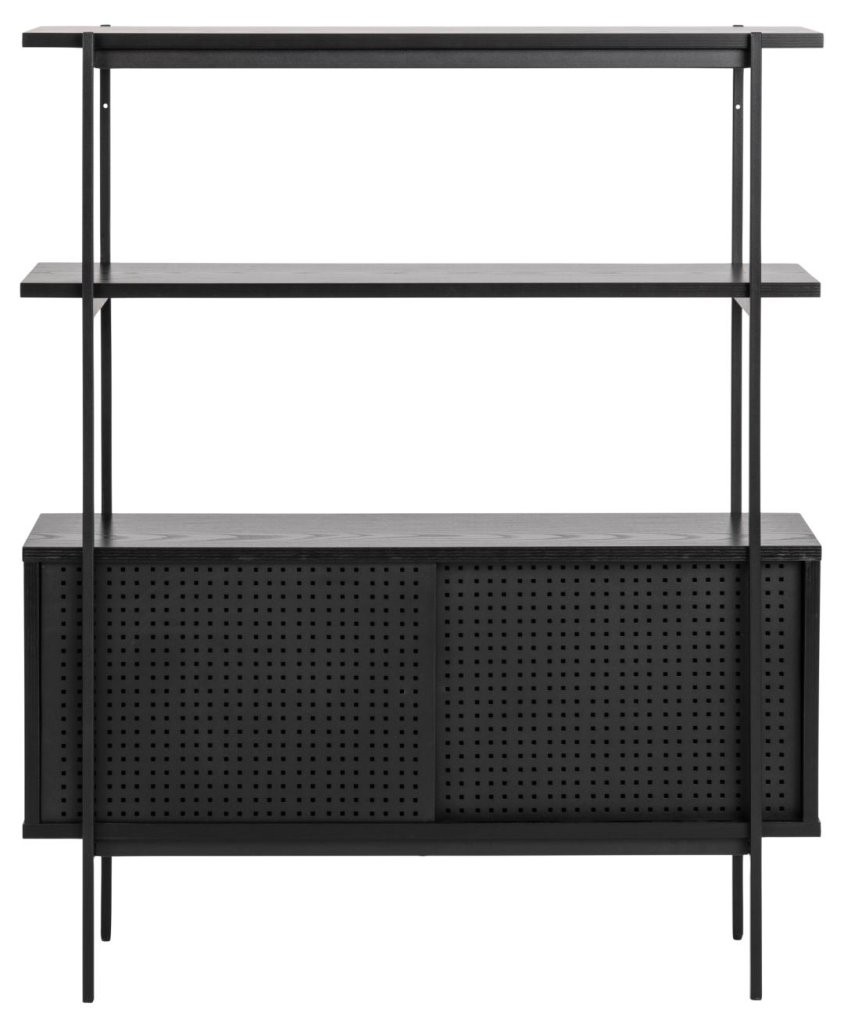 Ta eleganten POLIČNIK ETERNO je zasnovan v modernem stilu. Ena od ključnih funkcij poličnika so drsna vrata, oziroma nekakšna pregrada, ki vam omogoča, da za njo skrijete stvari, ki bi jih raje imeli izven dosega oči. Prednost nakupa poličnika ETERNO je tudi kakovosten črni melamin, ki je obstojen in enostaven za vzdrževanje.