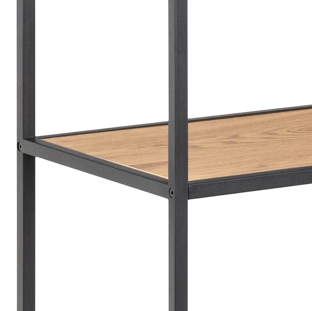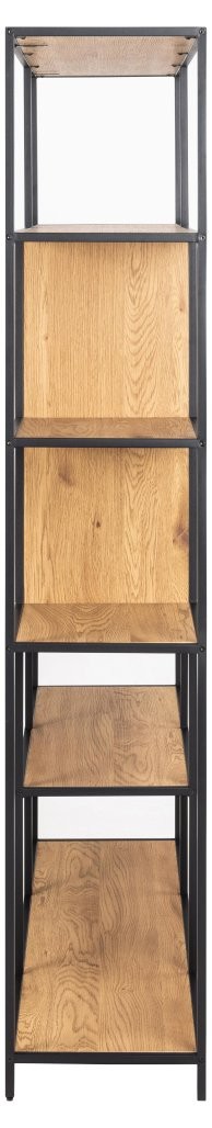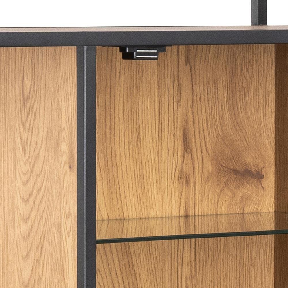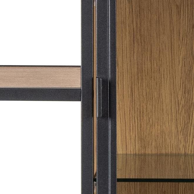 Poličnik Ferro ponuja dovolj prostora za shranjevanje knjig, okraskov ali drugih stvari, hkrati pa zagotavlja udoben in estetski videz vašemu prostoru. Oblikovan z 8 policami v stilu mat divjega hrasta, ki ustvarjajo osvežujoč kontrast s kovinskim okvirjem v mat črni barvi. Njegova posebnost so vrata iz kaljenega stekla, ki varujejo police za razstavljanje priljubljenih okrasnih predmetov.