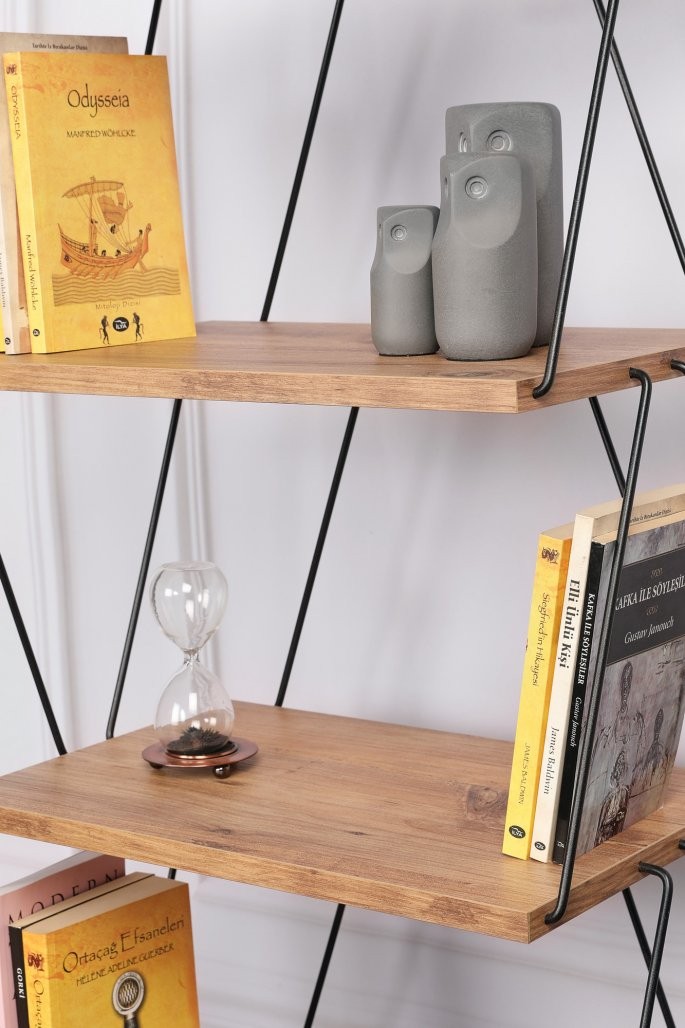 Moderna in novostna zasnova te knjižne police bo takoj dvignila videz vsake sobe. Ne glede na to, ali imate sodoben ali industrijski dekor, se bo ta knjižna polica brez težav zlila in izboljšala celotno estetiko vašega prostora.