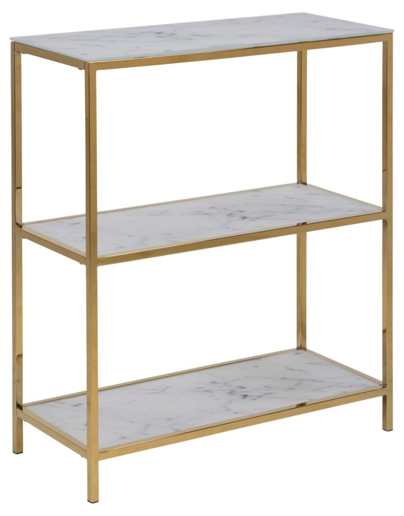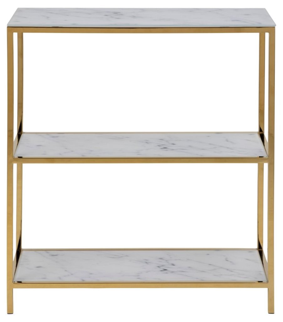 Poličnik Jovano je sodoben in moderen poličnik, ki bo zaključil prostor z izrednim stilom. Ima obilico shranjevalnega prostora. Z zamegljenim marmornatim videzom in z zlato kromiranim podnožjem je popoln za hodnik, spalnico ali dnevno sobo, kjer lahko razstavite svoje najljubše predmete. Skrbno izbrani materiali so enostavni za vzdrževanje.