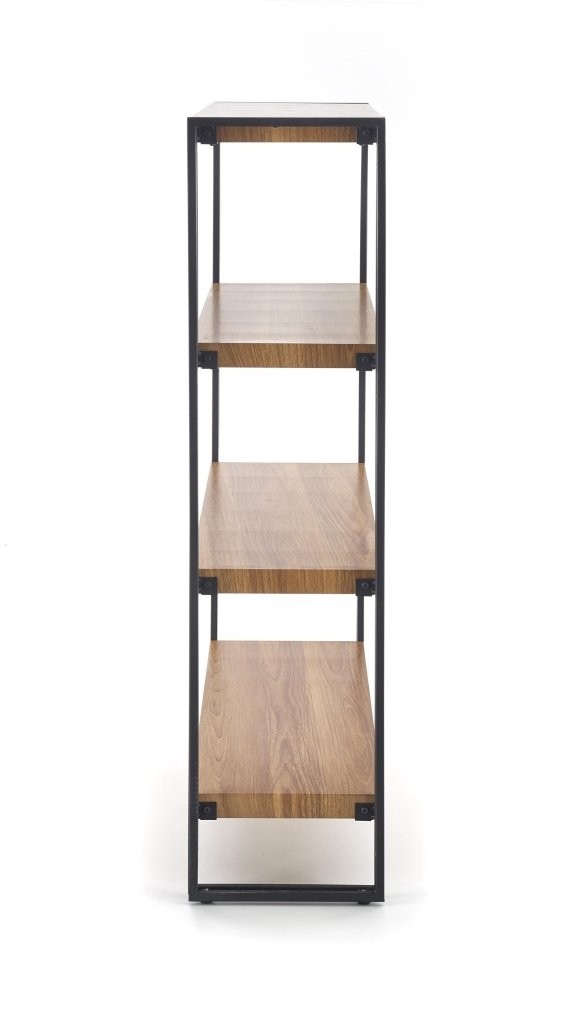 Poličnik Karel v zlato hrastovem videzu z robustnim črnim kovinskim okvirjem je popoln za razstavljanje knjig ali dekorativnih predmetov. Odličen dodatek za sodobne prostore.