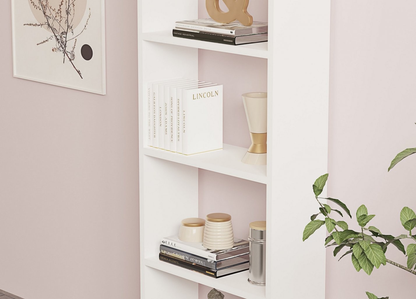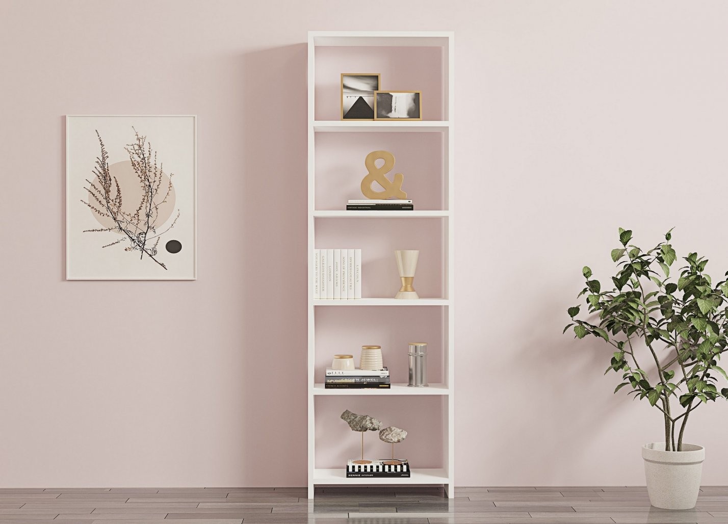 Skandinavski koncept te knjižne police v vaš bivalni prostor vnaša občutek miru in preprostosti. Izdelek s čistimi linijami in belo barvo (barvami) ustvarja umirjeno in vabljivo vzdušje, zato je odličen dodatek za vsak sodoben dom.
