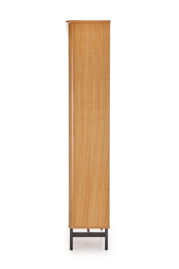 Poličnik Lanvek je idealen za sodobne interjerje. Njegova kombinacija naravne hrastove teksture in črnega okvirja prinaša toplino ter industrijski videz, zaradi česar je funkcionalen in estetski dodatek v vsak prostor.