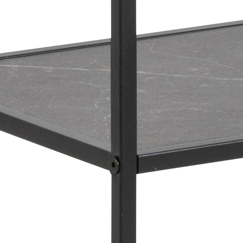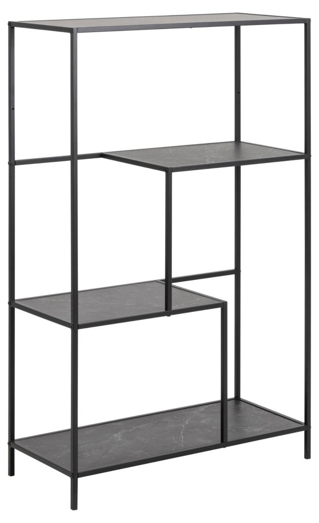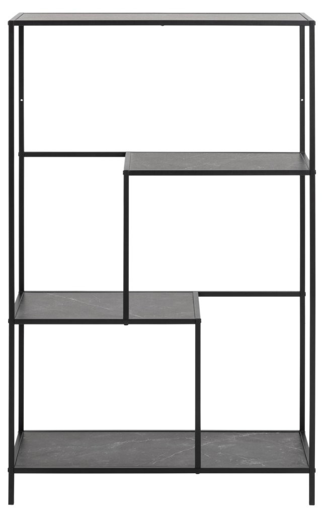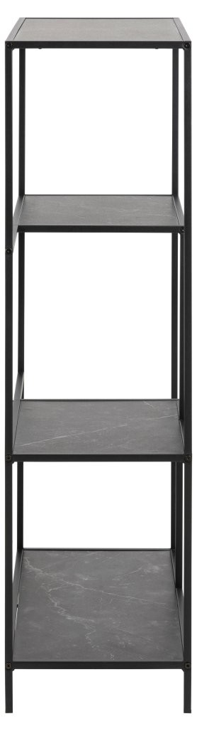 Spremenite svoj prostor z našim poličnikom Larvin, ki je tako funkcionalen kot privlačen. S svojimi asimetričnimi policami in industrijskim izgledom boste svoje stvari lahko shranili na prepoznaven in organiziran način. Poličnik je v osnovi črne barve s kvadratnimi poličkami s črnim marmoriranim videzom, ki dajejo edinstven videz prostoru. Narejen je iz kakovostnega mediapan (MDF).