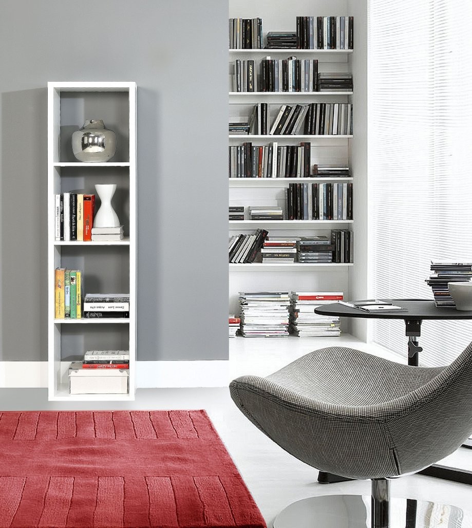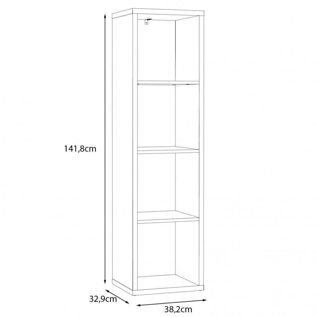 - Visok poličnik s tremi policami ter odprtim hrbtom, na voljo v več barvnih varijacijah.