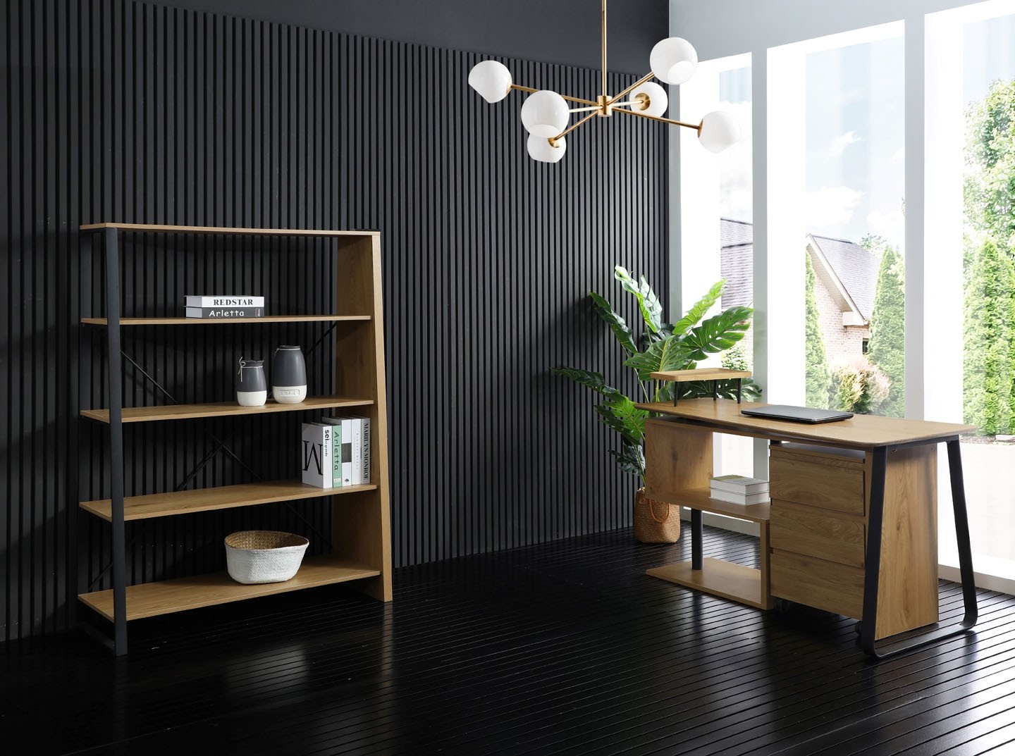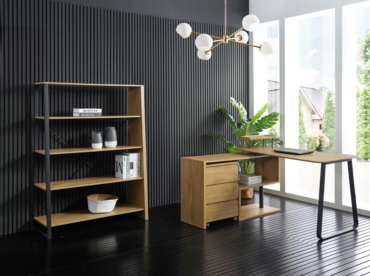 Privoščite si čudovit in preprost poličnik MOBILIA. S štirimi fiksnimi, prostornimi policami, ta poličnik ponuja obilico prostora za vaše knjige, okraske ali druge dragocene predmete. Zahvaljujoč naravnemu videzu lesa in robustnemu kovinskemu okvirju, ta kos pohištva prinaša toplino in sodoben značaj v vsak prostor.