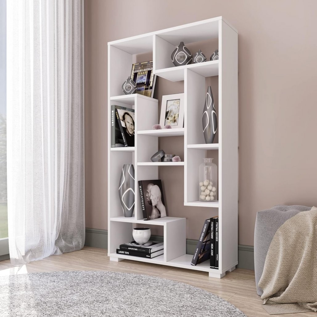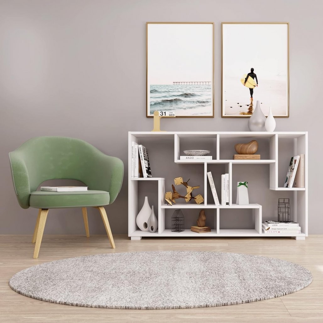 - Sodoben poličnik, na voljo v povsem beli barvi ali v kombinaciji hrasta in črne barve