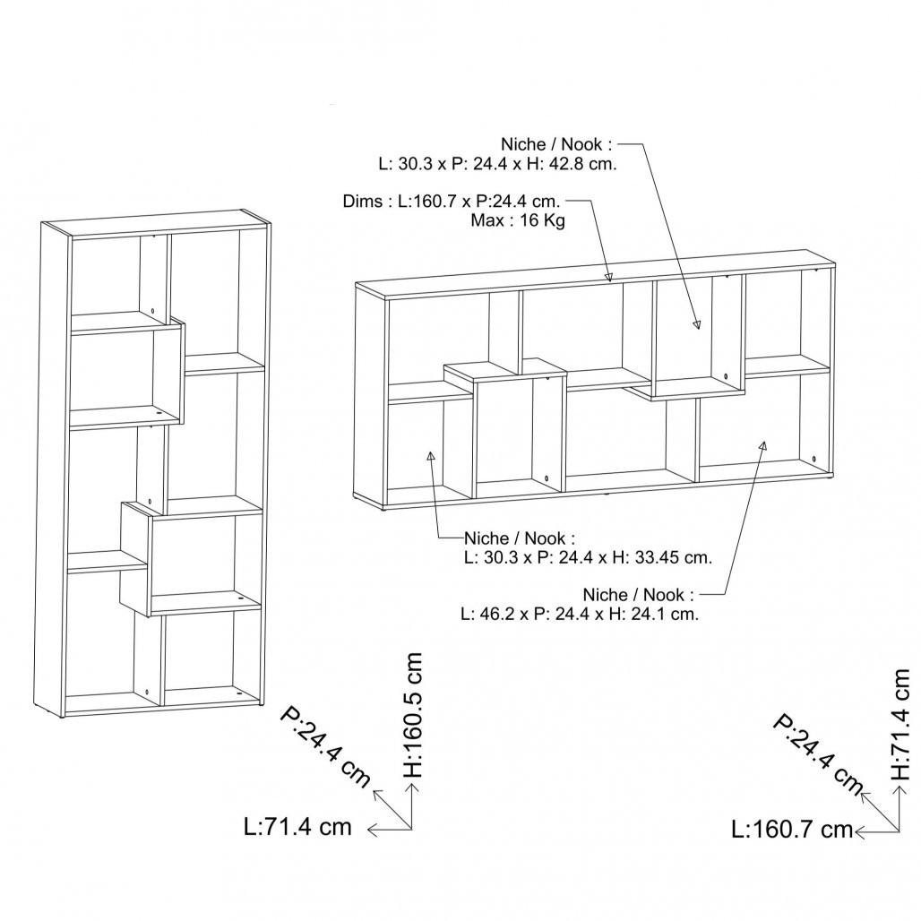 - Ima osem odprtih prostorov za odlaganje stvari ter je v celoti narejen iz kakovostnih iveralnih plošč, oblečenih v melanin
