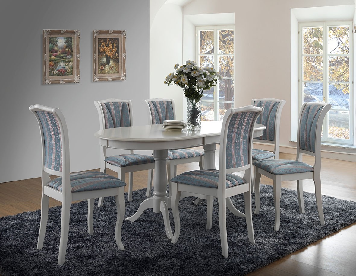 Jedilni stol SIENA NEW je na voljo v imenitnem rustikalnem videzu in izdelan iz masivnega lesa kavčukovca, ki zagotavlja njegovo kvaliteto in dolgotrajnost. Hrbtišče in sedišče stola sta prevlečena s kakovostno tkanino, ki vam omogoča udobno sedenje v vseh letnih časih. Hrbtišče je izdelano iz vezane plošče in prevlečeno s PU peno, sedišče pa je izdelano iz MDF plošče debeline 9mm in prevlečeno s PU peno. Okvir stola je v beli barvi.