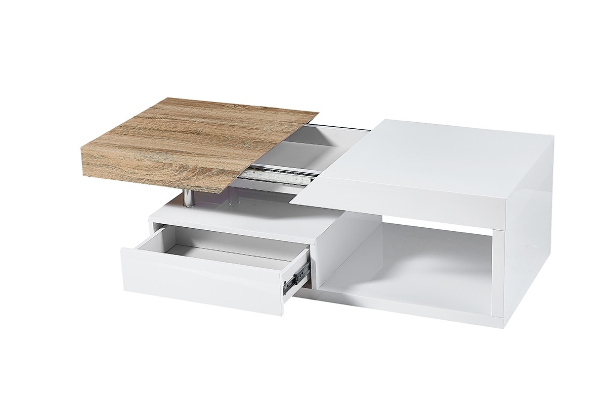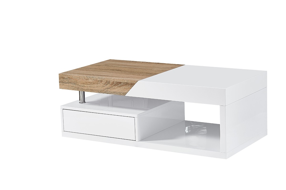 Klubska miza STEVEN je moderna klubska mizica s predalom. Mizica je v kombinaciji bele barve visokega sijaja in sonoma hrast.