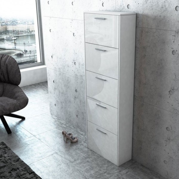 Omara za čevlje MARIAN je praktična omara za čevlje, ki je dobavljiva v beli barvi. Omara ima pet predalov za čevlje. Vsak predal ima vmesno pregrado, ki jo lahko uporabite po potrebi. Oglejte si še drugo omaro iz istega programa.