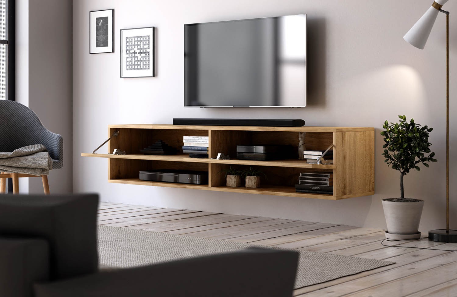 Je prišel čas za novo pohištvo? S Viseča TV omarica DORI Wotan hrast 140 cm bo vaš dom z lahkoto postal bolj udoben in stilsko dovršen. Dekorirajte svojo dnevno sobo s TV regalom, s katerim bo vaš dom izgledal večji in lepo pospravljen. Da zagotovite, da vaš dom ne postane prenatrpan in poln navlake ste verjetno še posebej pozorni pri izbiri nobega pohištva. Če v vašem domu ni veliko prostora je določitev postavitve precej težavna. Zato je ta TV regal zasovan z namenom, da naredi vaš dom bolj prostoren in posledično tudi bolj udoben.