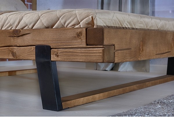 Postelja AURORA bo s svojim čudovitim rustikalnim in toplim videzem ustvarila občutek kot da ste res Aurora iz pravljice Trnuljčica. K njenemu robustnemu videzu prispevajo naraven masivni les, kovina in grobi zaključki. Površina postelje je oljena, s čimer se ohranja naraven izgled lesa. Vzmetnica in letveno dno nista vključena.