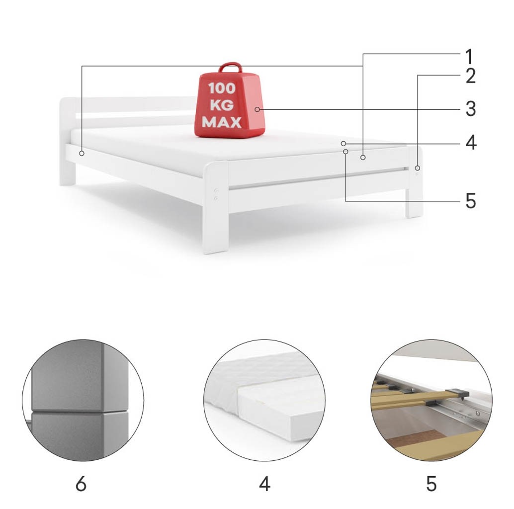 Postelja Dallas je trpežna in zaradi tega primerna tako za otroke kot odrasle osebe. Njena maksimalna obremenitev znaša 160 kg.