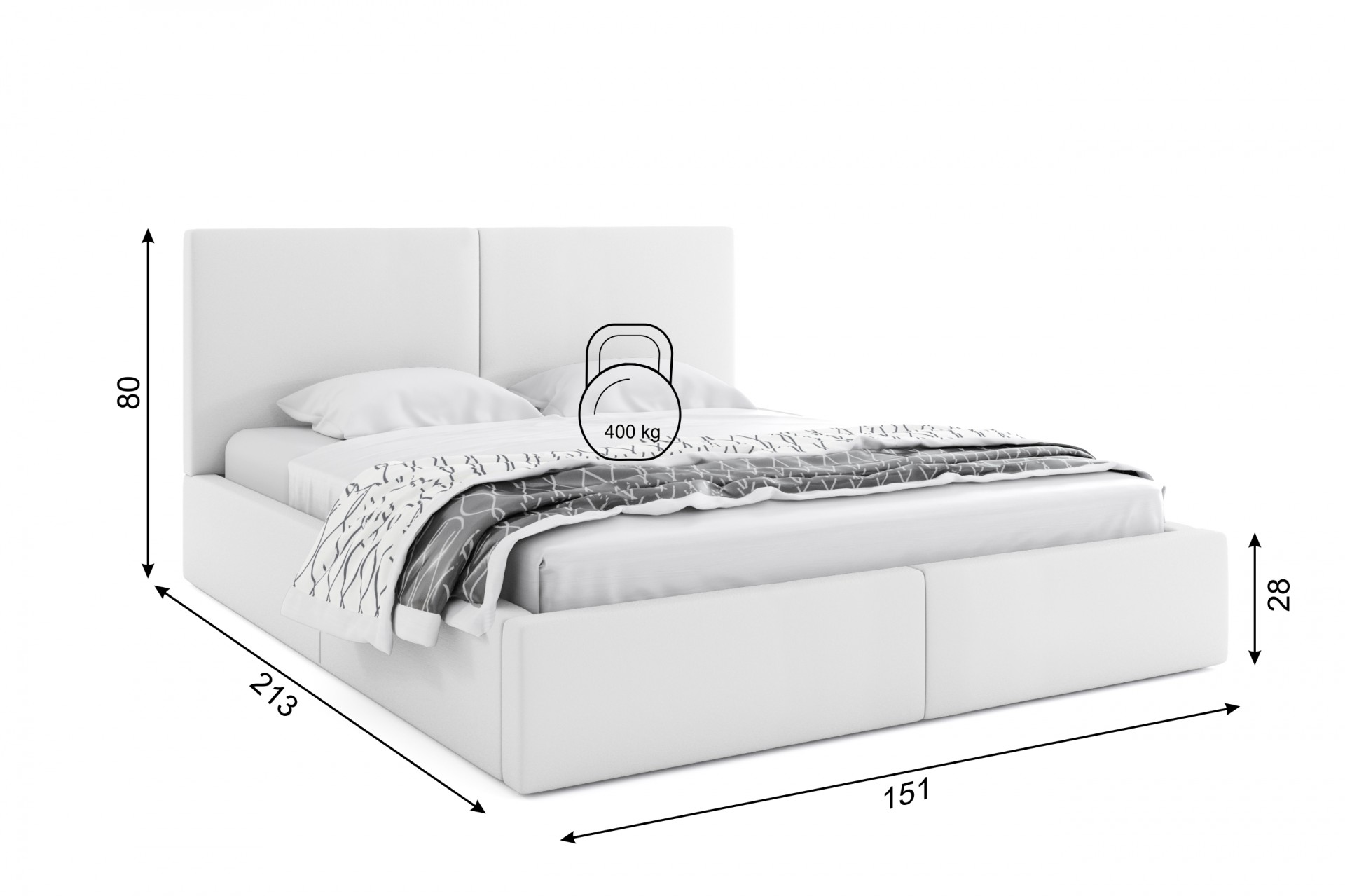 Postelja HILTON 140x200 CM je modernega izgleda in na voljo v različnih barvah. Postelja je oblazinjena v trpežno, kvalitetno in prijetno tkanino. Postelja vsebuje dvižni mehanizem in ima pod sabo shranjevalni predal, kamor lahko pospravite posteljnino, blazine in ostala sezonska oblačila. Posteljni pod je vključen v ceno, medtem ko ležišče ni vključeno v ceno. Kovinsko ogrodje je nameščeno na dveh kovinskih vzmetnih mehanizmih, sestavljenih iz 30 močnih letvic, nameščenih na kovinski konstrukciji. Največja nosilnost ogrodja je 400 kg