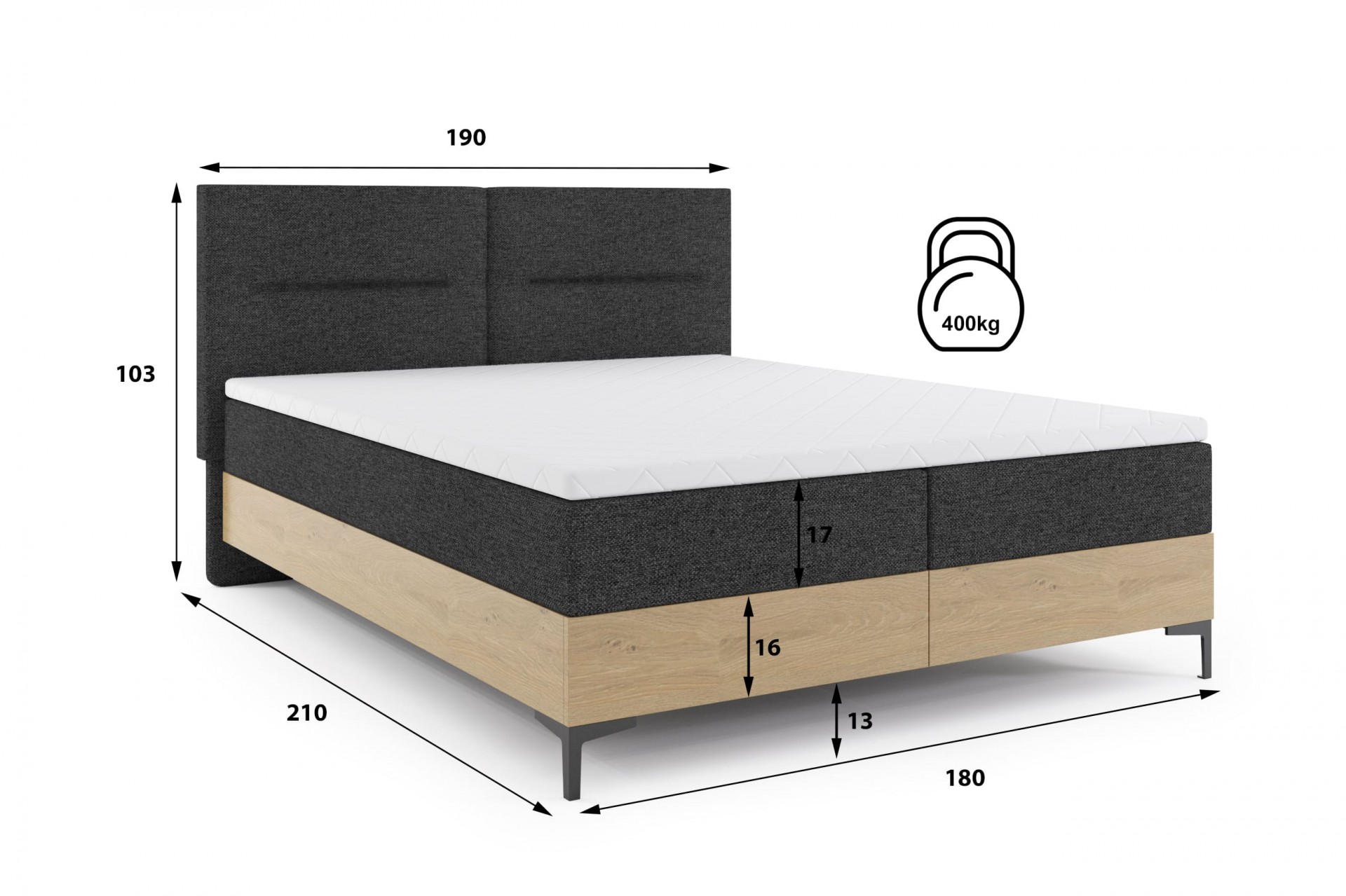 Postelja IMPERIAL ZORA je modernega izgleda in na voljo v barvni kombinaciji bora kot osnove in grafita kot oblazinjene konstrukcije. Konstrukcija je narejena iz kakovostne in vzdržljive laminirane plošče. Postelja vsebuje prostor za shranjevanje z dvižnim mehanizmom iz obeh strani. Zadnja plat postelje je oblazinjena in v barvi grafita. Vključeni sta 2 vzmetnici. Največja nosilnost ogrodja je 400 kg. Postelja nudi odlično razmerje med funkcionalnostjo in estetiko primerna za različne prostore, saj je na voljo v različni velikostih.
