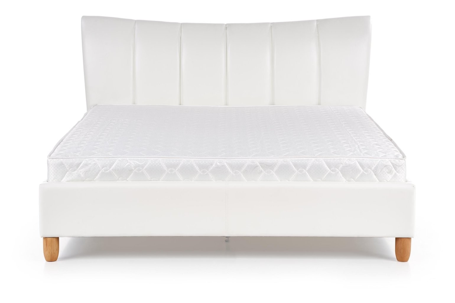 Postelja Kiran je elegantna postelja z okvirjem iz masivnega lesa in oblazinjenjem iz umetnega usnja v beli barvi. Primerna za ležišče dimenzije 160x200 cm.