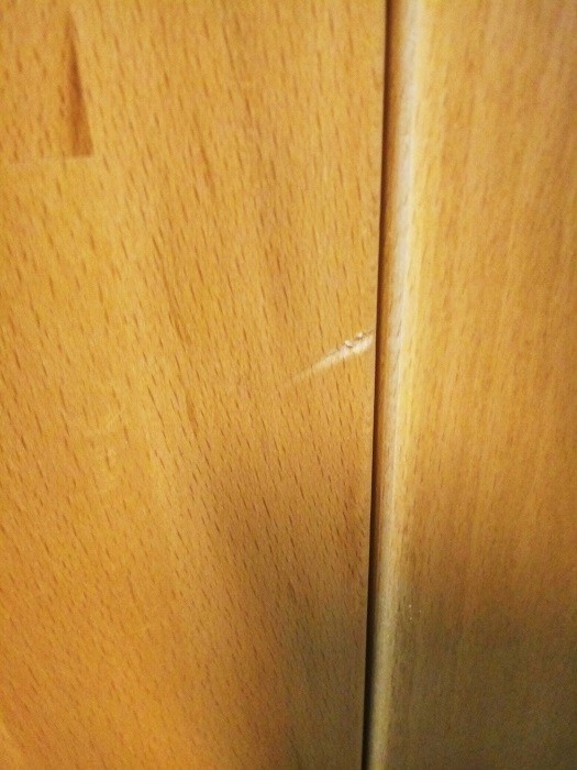 Postelja je poškodovana na robovih in vzglavna stranica je malo majava (glej slike)!!